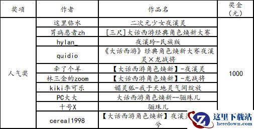 除了专业评审的奖项,经过大话兄弟们的踊跃投票,在精选的100组作品中,也有10组作品脱颖而出,获得了Top10人气奖。这些优秀人气作品,蕴含着玩家大神对于大话的喜爱,更展现出了大话玩家们充满活力的想象,获奖者与获奖作品名单如下: