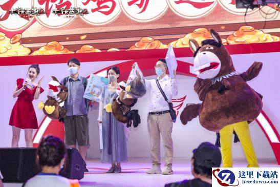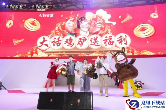 精彩的走秀节目之后,大话世界里最受欢迎的鸡驴大神,也赶紧亮相舞台。两只鸡驴大神同时降临,为现场的朋友们送上了大话西游戏影江湖皮影小剧场、大话西游暖手抱枕、大话西游手游小五叶摇头娃娃、游戏表情逗趣系列陶瓷杯等精美的游戏周边福利,让现场观众们高呼“这一趟来的太值了!”