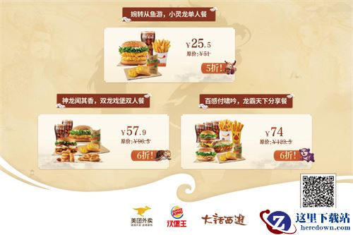 你可以选择“小灵龙单人餐”,悠然自得地感受婉转从鱼游的一人美好时光;也可以选择“双龙戏堡双人餐“和自己的伴侣一起享用美味,神龙闻其香,食指亦大动;除此之外,更可以和好兄弟们一同分享“龙霸天下分享餐”,百感付啸吟,共话江湖之余也让美味成为情义的最佳纽带!更加惊喜的是,活动期间所有套餐低至5折起,无论是单人独享还是和好兄弟共同大块朵颐,总有一款套餐适合你!除了5折的套餐优惠,汉堡王还带来了全场通用的3元美团外卖无门槛抵用券,领取传送门:http://dpurl.cn/vy1Ey3s,可谓惊喜连连。