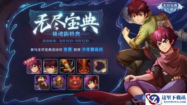 为庆祝《英魂之刃》×《镇魂街》联动顺利开启,8月16日至9月12日,无尽宝典开启镇魂街特典,宝典等级达到30级就可以免费获得少年曹焱兵,还有其他精美礼品,将宝典升级成进阶宝典更有超值联动奖品等你来拿!活动期间《镇魂街》作者许辰亲制的番外篇也将在游戏内率先亮相,英魂大陆和罗刹街的次元壁突破,会发生怎样的故事呢?