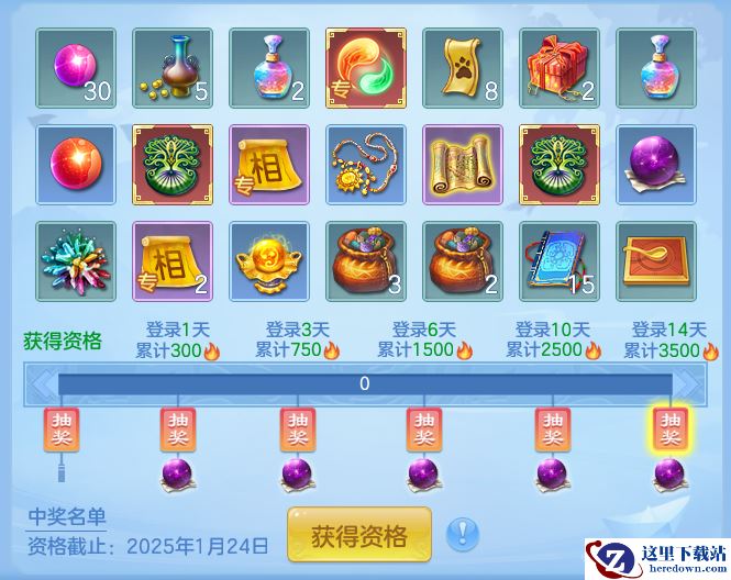 每次抽奖可获取兑换积分,可用于指定兑换神兽之灵、神兽内丹碎片等奖励。