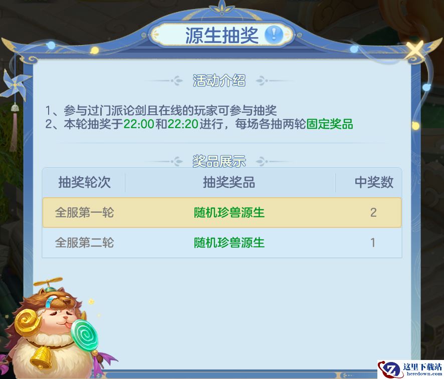 ①抽奖活动会在门派论剑或登高寻宝活动过程中和结束时出现;