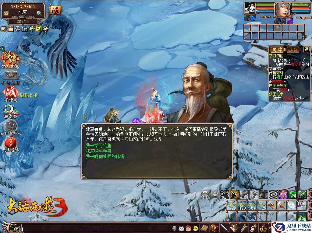 钓鱼系统上线后,少侠在紧张的战斗挑战之余,也可前往三界各处体验惬意的垂钓。主角等级满140级且达到飞升,即可前往北冥寻找蓑笠翁进行对话,完成引导任务学习钓鱼之法。