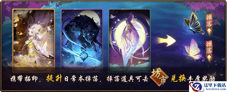 3月11日维护后至3月25日,凡已通过第六章剧情的降妖师均可参与“蝶影含香梦落花”主题活动,当完成全部活动剧情任务后,可以获得“幽都神藏”等奖励。在日常本活动中,降妖师们可以收集“白蝶翎”与“黑蝶翎”代币以及活动点数“迷梦碎影”;而在合作本中,则可获取“梦蝶碎片”与“食梦妖碎片”。