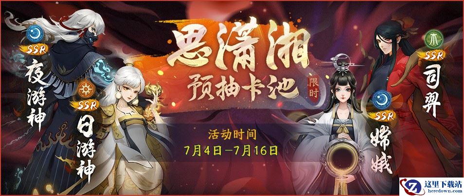 “思潇湘 预抽卡池”开启,日游神、夜游神、司羿和嫦娥等SSR妖灵领衔众妖灵等候召唤。7月4日至7月23日,降妖师们可进行最多十二次八连预抽,完成96次预抽卡后必得SSR妖灵一位。预抽卡结束时,降妖师可根据预抽收获决定是否要以超值折扣将其取出。