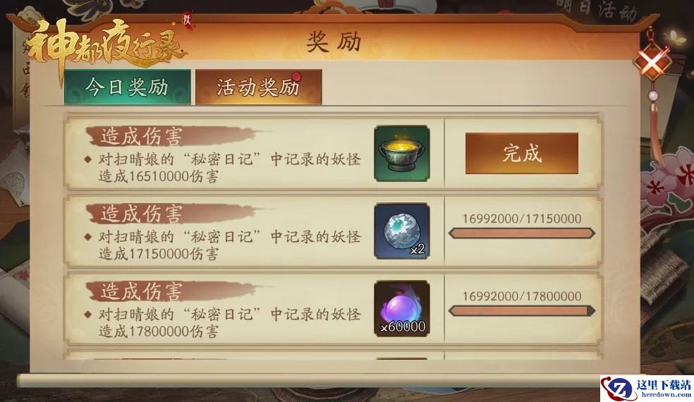 完成第一天的剧情之后,更可以打开扫晴娘的秘密日记,挑战上面记载的各路妖怪,在这个纯战斗副本中,需要的就是玩家们的技术和策略,累计伤害高即可获得高额奖励,并获得兑换扫晴娘的道具——“小纸人”。