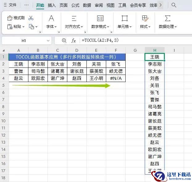 语法:=TOCOL(数组,[忽略特殊值],[通过列扫描])