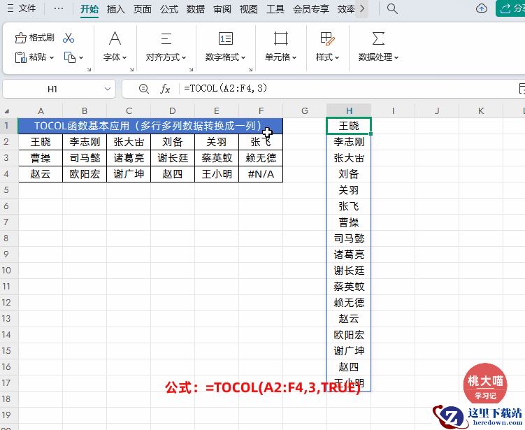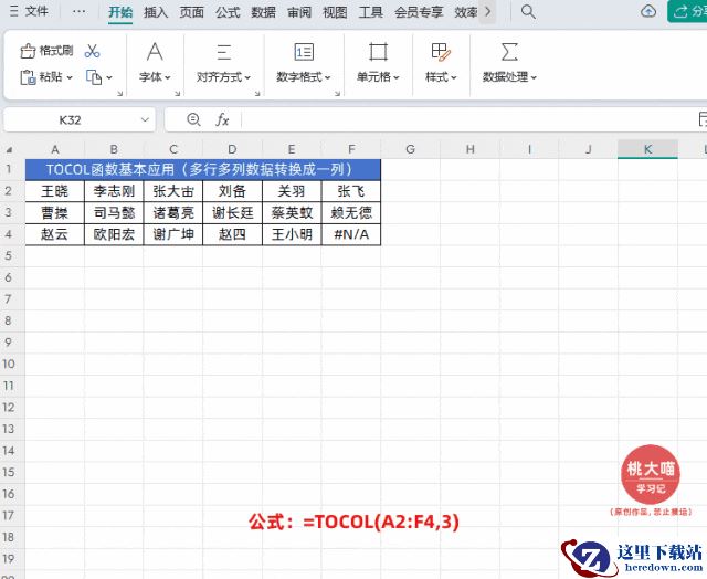 ①公式就是把A2:F4数据区域按行转换成一列数据,第二参数是3代表忽略空白单元格和错误值。