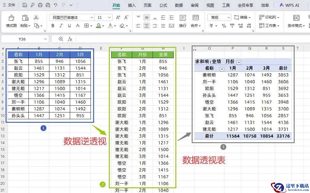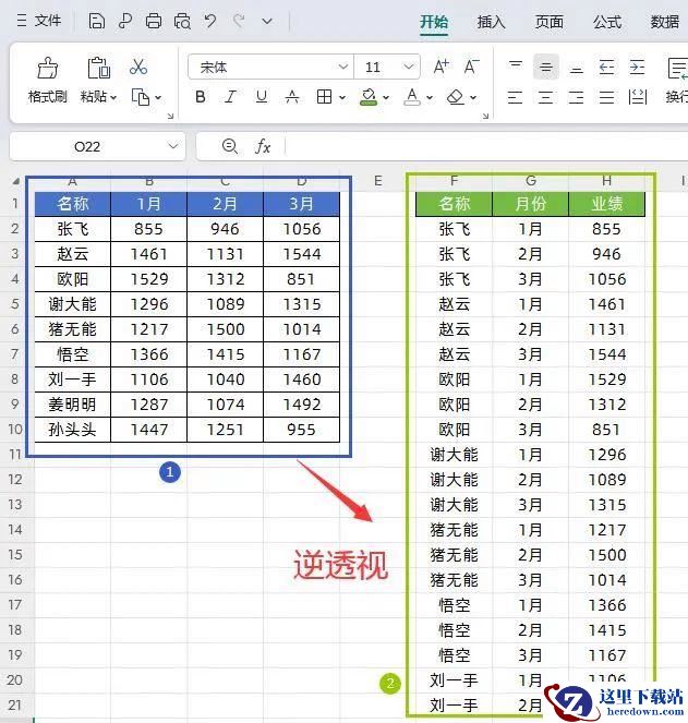 如下图所示,下面1-3个表格都是员工1-3月份销售业绩明细,只是表格数据展现形式不同。如果想把表格2转换成表格1样式,我们只需要使用透视表即可,也就是表格3样式;如果想把表格1转换成表格2样式就是数据逆透视的效果。