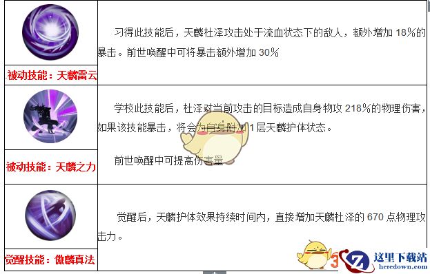 说明:该逸事札极大提高的了天麟杜泽的生存能力。