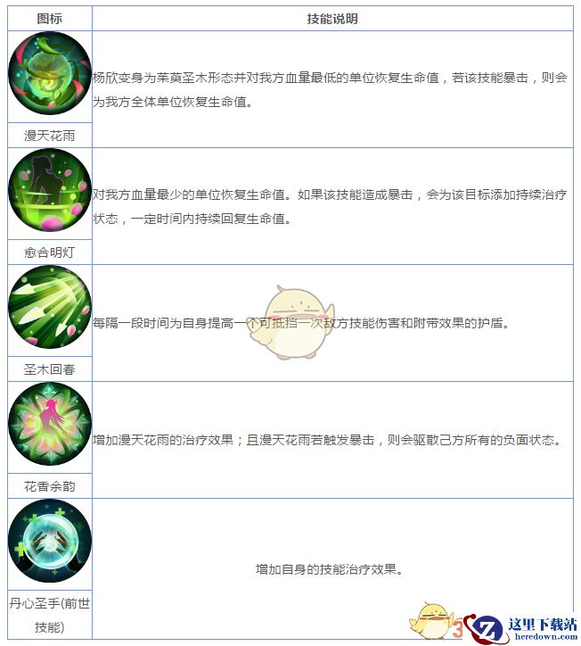 说明:直接增加杨欣绝技20%的治疗量,使杨欣治疗低血量妖灵师时恢复更多的生命值。