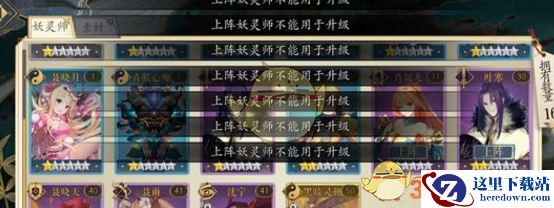 如果在日常副本中,也有着聂离的话,就需要把日常副本的聂离给下阵下来,如果这三个阵容中只要有一个没下下来,就会提示说上阵妖灵师不能用于升级。