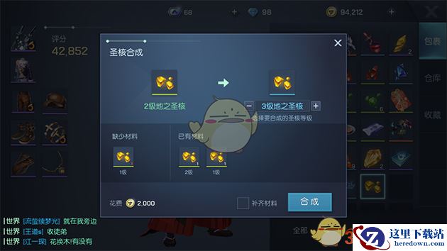 此外,玩家在活动中有机会获得不同等级的圣核。即使是相同类型的圣核,等级不同,它们也是占用的两个格子。这时候玩家可以攒一定数量的低等级圣核,直接合成高等级圣核,合成等级就是背包中已经存在的同类型高等级圣核,如玩家在背包里有1个三级地之圣核的时候,可以攒4个1级地之圣核圣核直接合成一个三级的,这里的低等级圣核的数量一定要计算清楚,不然不仅不会腾出背包格子,还会多花费一个背包格子。如玩家只有3个1级地之圣核的时候就开始合成,那么最终只能合成出1个1级和1个2级地之圣核圣核。