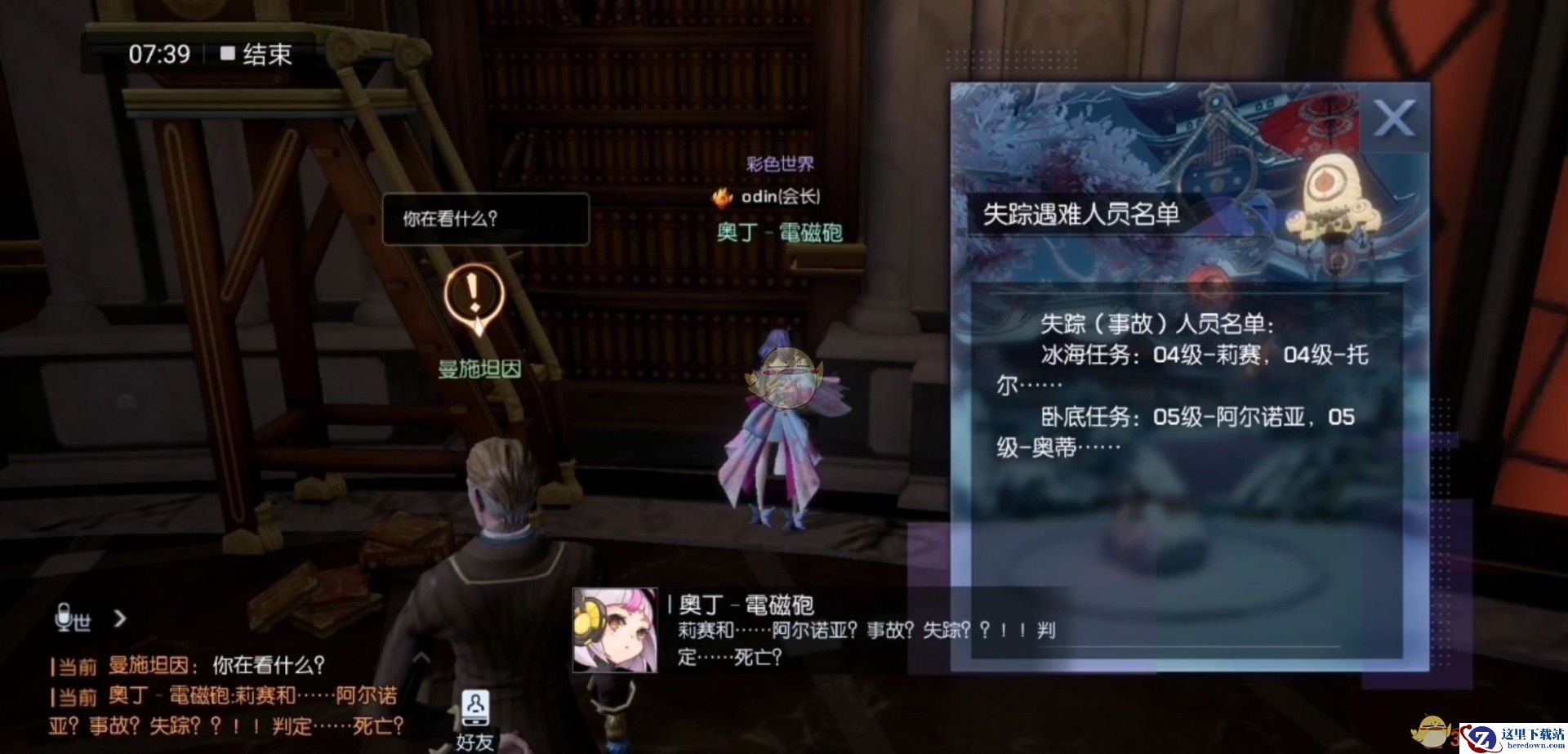 捡起来以后可以看到之前他们的回忆,然后在右边的书架上查看失踪人员名单,发现上面有他们两个的名字