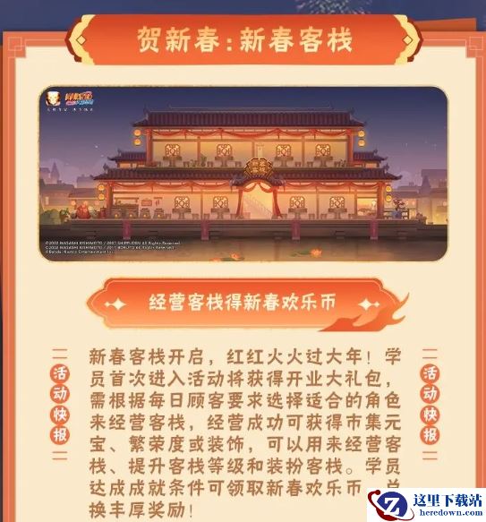 《火影忍者手游》贺新春:新春客栈活动内容是什么,很多玩家都想知道这个活动的具体内容是什么,活动能够获取什么奖励,那么接下来就由小编给大家具体介绍一下吧。