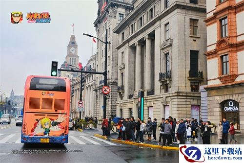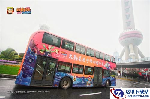 东方明珠之下的火影忍者主题巴士