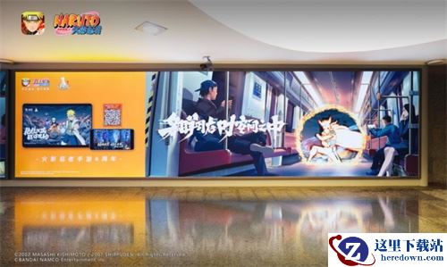 为了配合《火影忍者》手游上线四周年庆典的到来,2020年伊始,手游在上海人民广场地铁站超级品牌通道打造了“火影主题长廊”。“划破忍界黑暗,金色闪光归来”地铁主题海报上,波风水门那迎风飞舞的火影披风,蓝瞳中散发的温暖眼神点燃了所有火影粉丝的热情,也吸引了众多年轻人停下脚步合影留念。地铁创意广告中也有众多隐藏的“用心安排”,波风水门终于和儿子漩涡鸣人并肩作战拯救忍界;同时秽土转生后的波风水门开启“九喇嘛模式”,周身金色闪光辉耀夺目,此刻游戏中忍者联军已身处绝境,他们是否将迎来木叶金色闪光的最强助力?