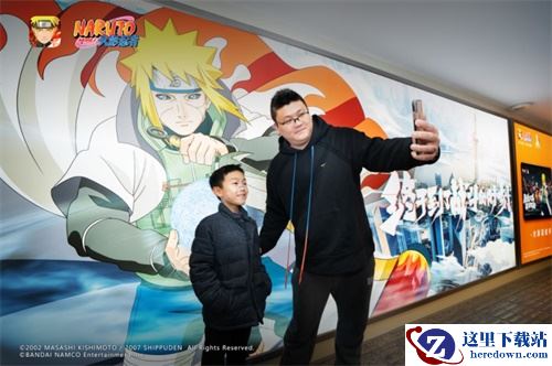 父亲带着儿子合影,仿佛让我们看到水门与鸣人的同框
