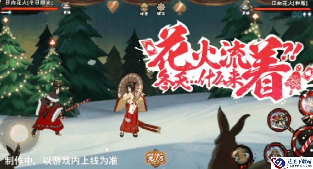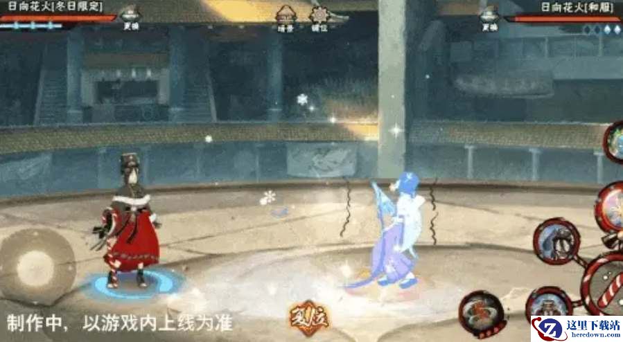 4、奥义技能:冬日花火在场景中奔跑并持续撞击敌人,环绕对手进行点穴攻击,最后滑到一旁,敌人散发七彩的光芒浮在空中后爆发出不同花色的图案。