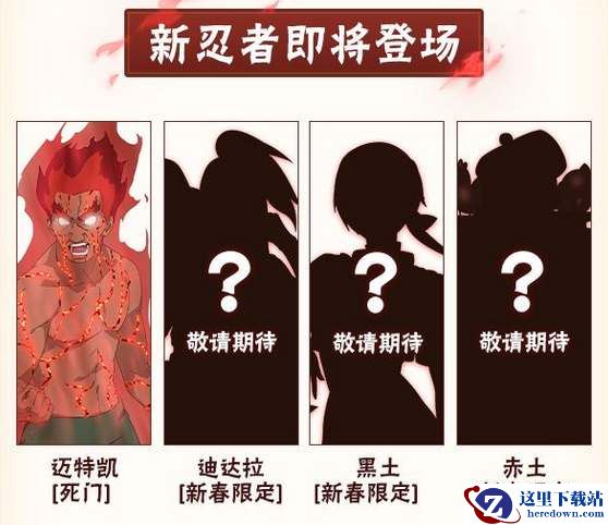 1、2023年1月的高招s忍者已经确定为迈特凯死门,此外新春活动还会上线3为限定忍者角色,分别是迪达拉[新春限定]、黑土[新春限定]、赤土[新春限定];