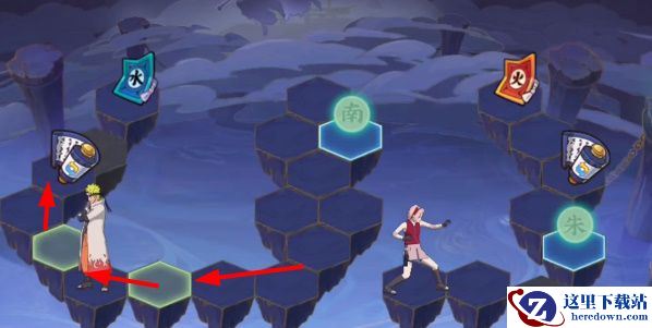 5、然后将小樱、鸣人按照下图方式移动到终点。