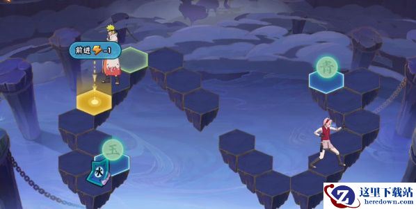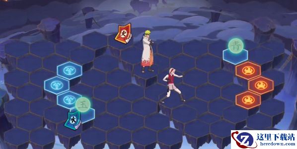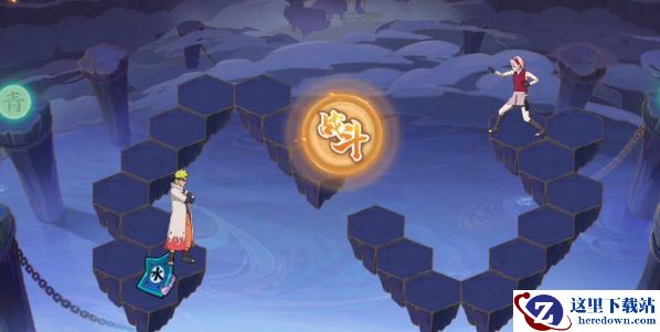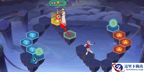 2、等到砖块都掉落下去以后,将鸣人移动到火卷轴这里。