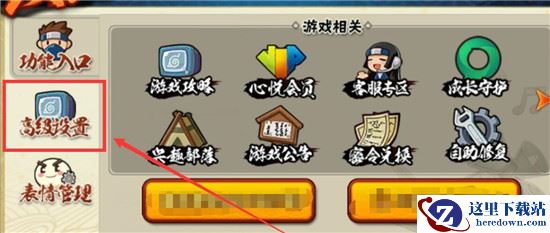 弹出设置界面,还是往左边看,可以看见左侧有“功能入口”、“高级设置”、“表情管理”等多个项目,这里我们就选择“高级设置”按钮。
