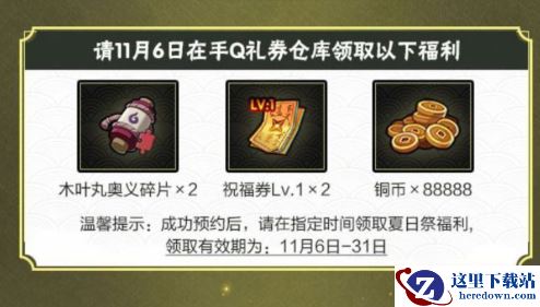 用户在活动期间内点击预约即可领取卡券(需当天有登录游戏哦~),在规定时间[2020年11月7日-11月30日]内前往手Q礼券仓库兑换即可获得超值好礼,单账号限领1次。