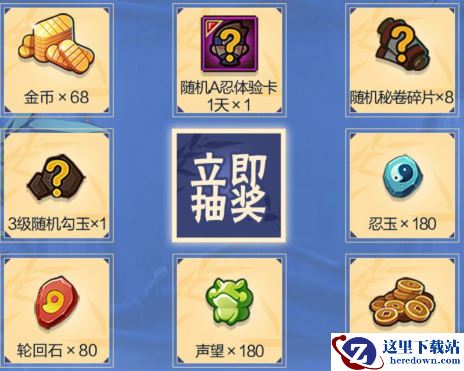 天选大奖:决赛抽出天选大奖幸运码,拥有该幸运码的学员及同队好友将获得免费解锁秘藏忍法帖+直升忍法帖200级的大奖1 S忍丰藏秽土转生马上到手!一人抽中。全队获奖!