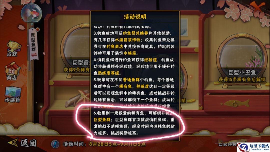然后是奖励,正常钓鱼奖励和上次没有变化,只有首次稀有鱼有,上次的新年币变成了密卷碎片。