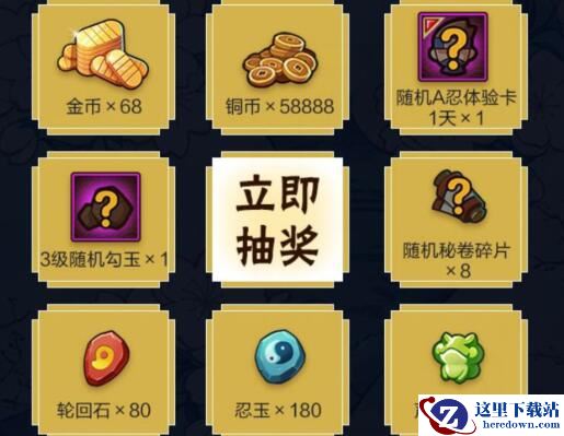 本次礼包中有3级勾玉、忍玉、随机A忍体验卡等奖励