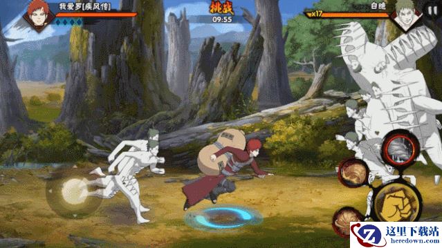 这一关有很多的陷阱,所以不能选择龙卷、落雷等印章,我们可以使用比较稳定的角色。比如可以选择我爱罗。
