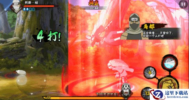 下一个形态的飞段,会开启诅咒的法阵,会加强自身的攻击力,所以我们只能用先用普攻把他打出诅咒的红色法阵,然后再用技能进行攻击。