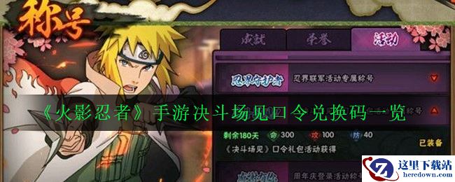 《火影忍者》手游中决斗场见称号怎么获得?火影忍者手游已经上线了中文主题曲《决斗场见》,玩家试听该主题曲即可获取同名称号的口令,使用口令即可兑换决斗场见称号了,很多小伙伴表示不知道兑换码是多少,那么接下来小编为大家带来《火影忍者》手游决斗场见口令兑换码一览,一起来看看吧。