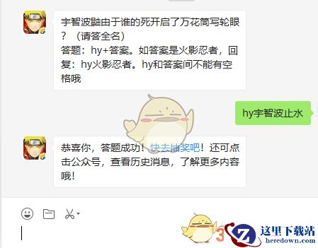 答题格式:hy+答案。如你的答案是火影忍者,则回复:hy火影忍者。各位忍者把正确答案告诉豚豚,就可以去领奖啦!