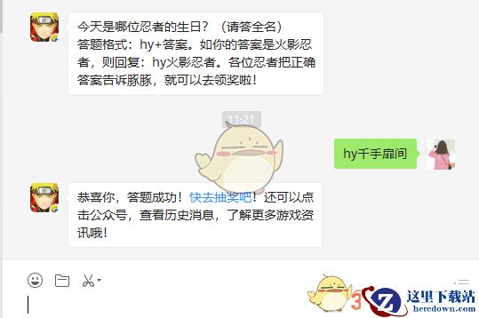 答题格式:hy+答案。如你的答案是火影忍者,则回复:hy火影忍者。各位忍者把正确答案告诉豚豚,就可以去领奖啦!