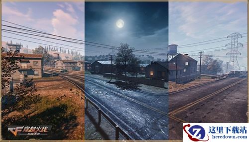 科技创造真实体验、6x6公里超大面积、经典地图场景植入,是CF手游“最终12小时”新模式的专属地图的三大亮点。依托于强悍游戏引擎和图形技术,该模式的专属地图的天气系统、地貌设定等每个细节都无限趋于现实,关乎光照、大气的高度拟真的画面可以媲美电影。