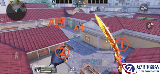 首先我们来看A点及A大的狙击点位,我们目前处于潜伏者刚进A大的路有多处拐外,并且在深处又一盲点,或称“猪圈”。而保卫者可从A控、A小道一同前压。所以我们也可以从A大墙体后和盲点进行夹击,火力交叉,这样我们可以保证不被敌人贴墙摸过来,也可以两个点位的队友快速补枪。
