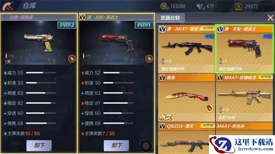 如图,沙鹰-双鱼座和橙色品质的源.左轮-黑武士相比,前者精度、穿透、便携等同后者,其他数据全部强于后者,即:论正面作战效果,前者占据优势(PS:源.左轮-黑武士未继承原英雄武器的各项额外附加属性)。