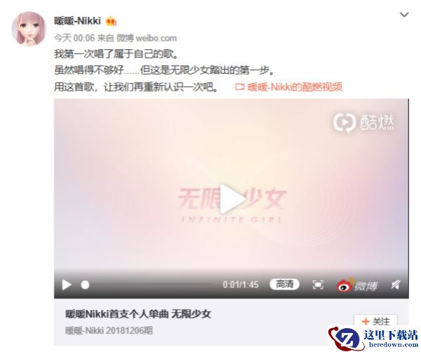 而在开通了个人微博的几分钟后,暖暖还发布了个人第一支单曲《无限少女》的 MV,以这首歌为契机与玩家重新认识。