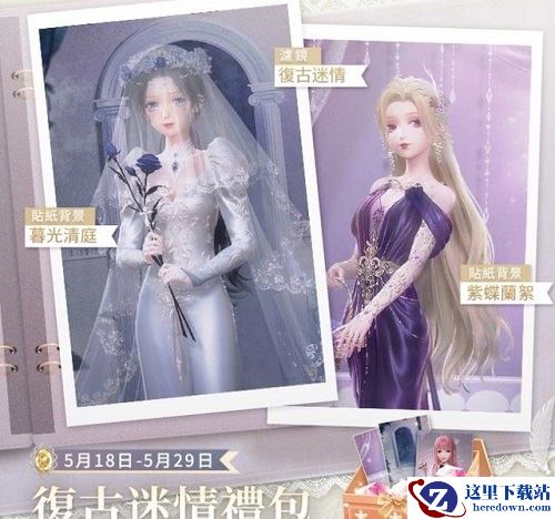 6、复古迷情礼包:新滤镜复古迷情、贴纸背景紫蝶兰絮、暮光清庭+粉钻。