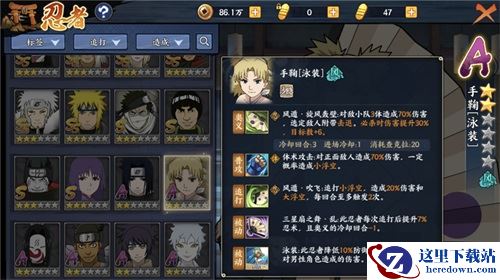 被动-【泳装】:此忍者降低10%防御和抗性,提升30%对男性角色造成的伤害。