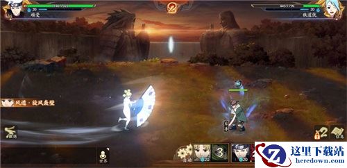 奥义技能-【风遁·旋风轰壁】:对敌小队3体造成70%伤害,选定敌人附带击退。必杀时伤害提升30%,目标+6.(冷却回合3,进场冷却1,消耗查克拉20)