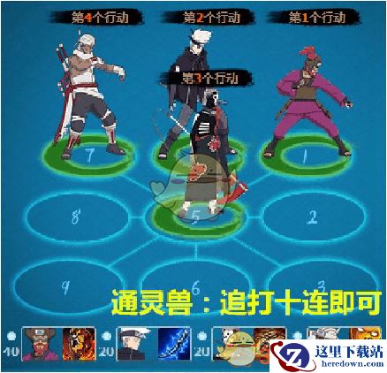 队伍中用到了突破鼬、三船、突破飞段,这是一个在第二回合爆炸输出的队伍,队伍中的雷主选用了根性被动保证了队伍的防御能力,飞段也因此免疫了一切状态以及打断!而且在竞技场的环境 下飞段一般都是可以接近满血带走的人,三船奥义可以补刀输出,第二个被动可以选择吸血或者杀意刷新都可以,爆发力十足,典型的敢死队!