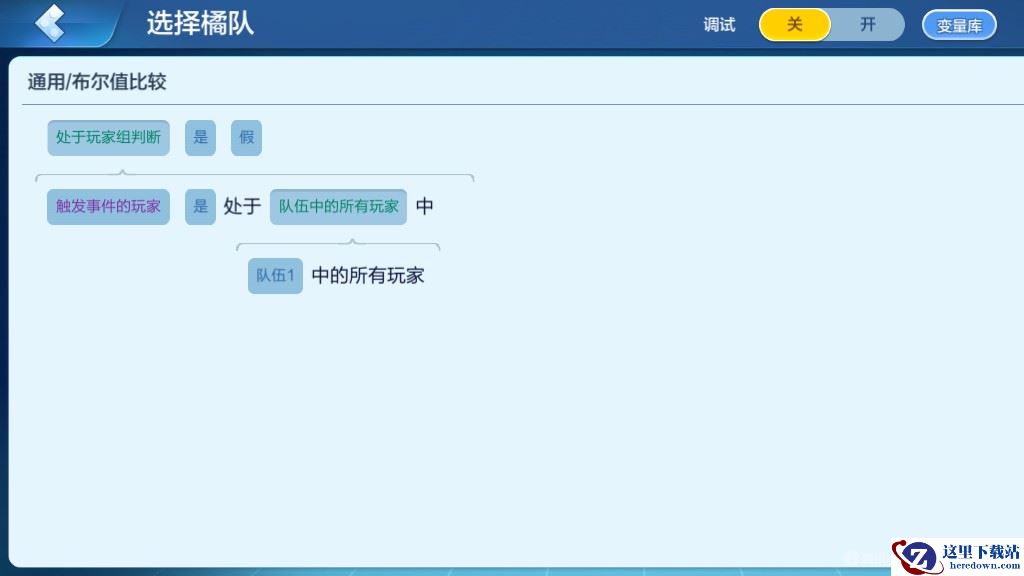 意思就是,当前玩家的队伍不是“队伍1(橘队)”时,执行下面的动作