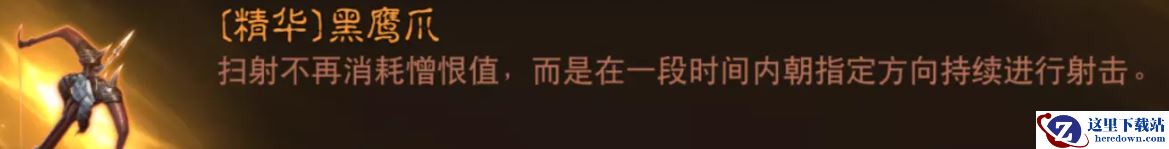 头部选择绳索射击最大充能,肯定是需要一个位移技能的,但头部在这个流派又没有更好的精华选择,就直接加强绳索射击了,对于我们灵活位移的能力也是提高。其次扫射是这套BD的核心,衣服增加扫射伤害、主手增加持续时间,副手火力压制让扫射改成指定方向,让这个技能可以更好的打到敌人。