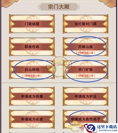 进入【门派】-【宗门大殿】,可以去【历练山脉】、【后山林地】、【宗门矿脉】中任意一个地方探索。