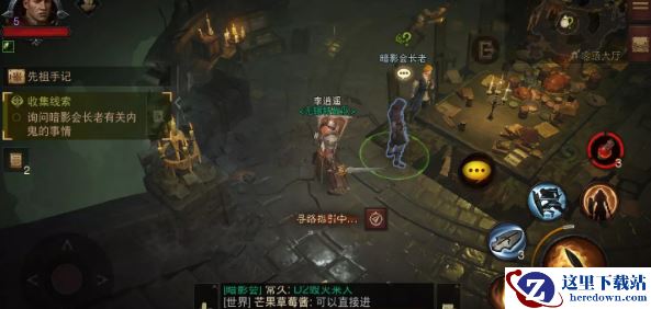 密语大厅与暗影会长老对话。