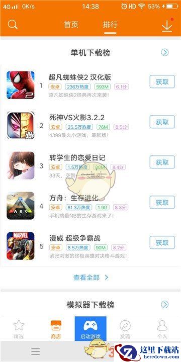 首页旁还有排行榜,可以看到目前单机下载榜排名前五的游戏,需要查看到多的话,点击“查看全部”即可。