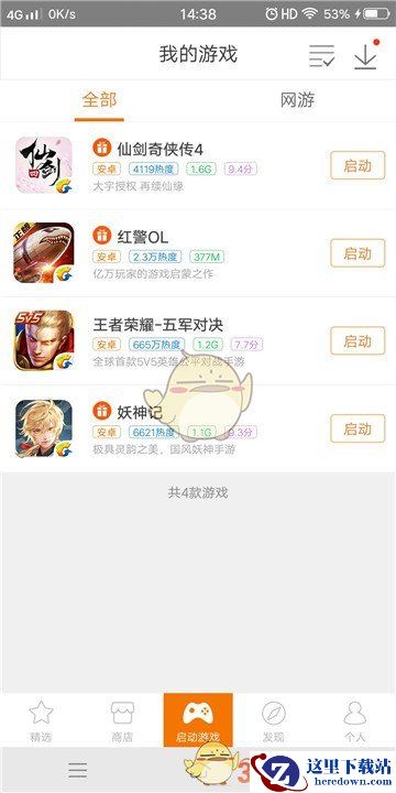 点击下方菜单栏的“启动游戏”,即可进入"我的游戏"页面,可以看到自己已经下载的游戏。